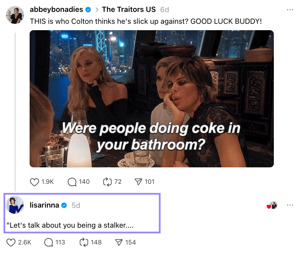 Not long after Rinna’s post made the rounds, The Traitors official account shared a familiar reminder asking fans to stop harassing contestants online. It is a message networks seem to issue more often lately, usually after the drama they happily amplified spills a little too far off-screen.